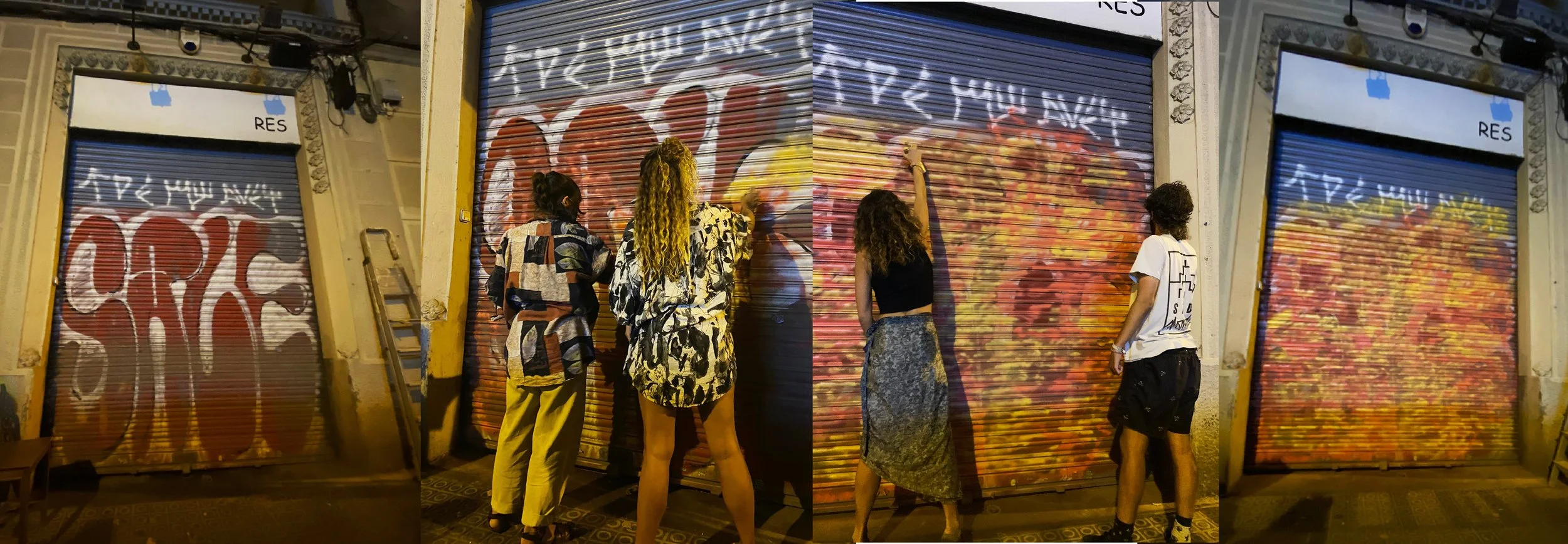 The mural was finalised with a happy cheer and it now lives in the streets of Barcelona. It is a rare one to find as you can only see it when the blinds are closed, which perhaps makes it that much more special. All in all I am happy with the clumsy result and mostly for the beautiful memory shared with loved ones. Let me know if you ever see it.