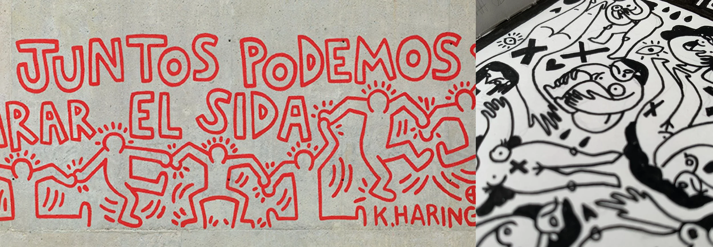 Near the MACBA there is a large Keith Haring mural intended to raise awareness of HIV and AIDS. It’s been there since 1989, which is a ridiculously long lifespan for the most ephemeral of art interventions, and one of his last pieces as he died of exactly that disease a year later. His repetitive figures dancing around my mind, I made a drawing on the little sketchbook thinking of this new and old as time subject. It shows a spectrum of women in different positions, hearts open and broken, with eyes on each and every one of us, to make sure we are accountable for our actions, to show how we are all human, connected, and entitled to freedom over our choices.