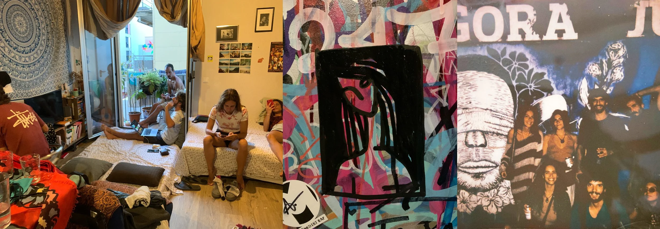 One afternoon, we were all sharing a beer in the Agora, an occupied community space run by some people from the Raval neighbourhood, when I struck a conversation with Pere. He was a friend of the people I was visiting, and I told him about my desire to work on my mural art skills. He very mellowly let me know that he had some blinds in his apartment not so far from where we were and that I was welcome to paint them. And that’s how I found a canvas.