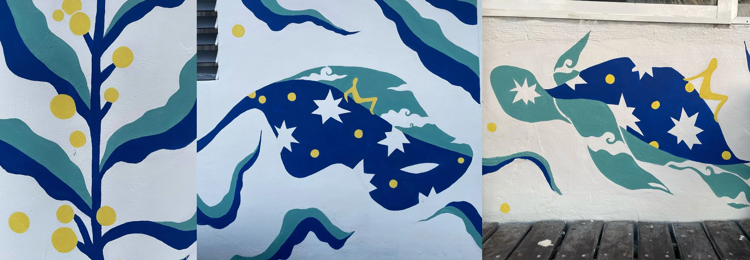 As with most of my murals, I like to drink from the culture and mythology of the place when I come up with the design.