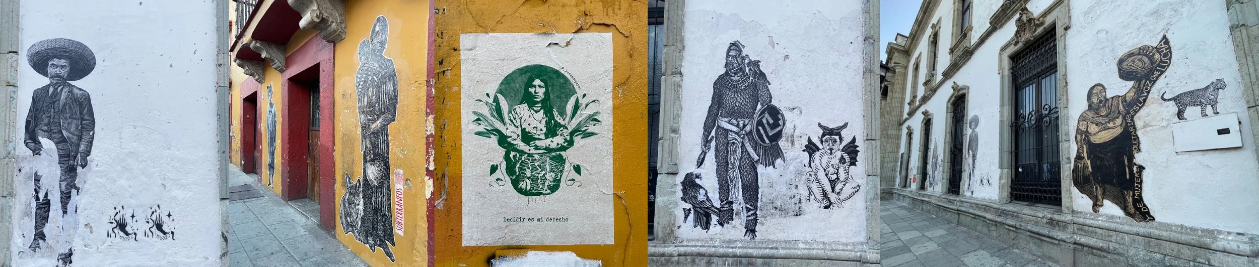 Going to Mexico, I was aware that they had a great printmaking culture, and I found it in Oaxaca, with the streets filled with giant, intricate Linocuts. For those not familiar with the technique, they might not realize the amount of time and physical effort the creation of these pieces takes, I was in awe at the abundance of talent in the street. Street art linocut, I’m taking notes.