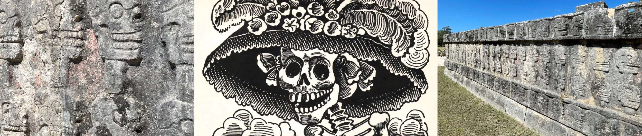 Turns out it was actually José Guadalupe Posada Aguilar, a political lithographer and relief printmaker who created and popularized an early version of the skeleton we recognize and see all over Mexico today. A satirical cartoonist, he used skulls, calaveras, and bones to convey political and cultural critiques. Among his most enduring works is La Calavera Catrina. Catrina is now the most widespread image associated with Day of the Dead.